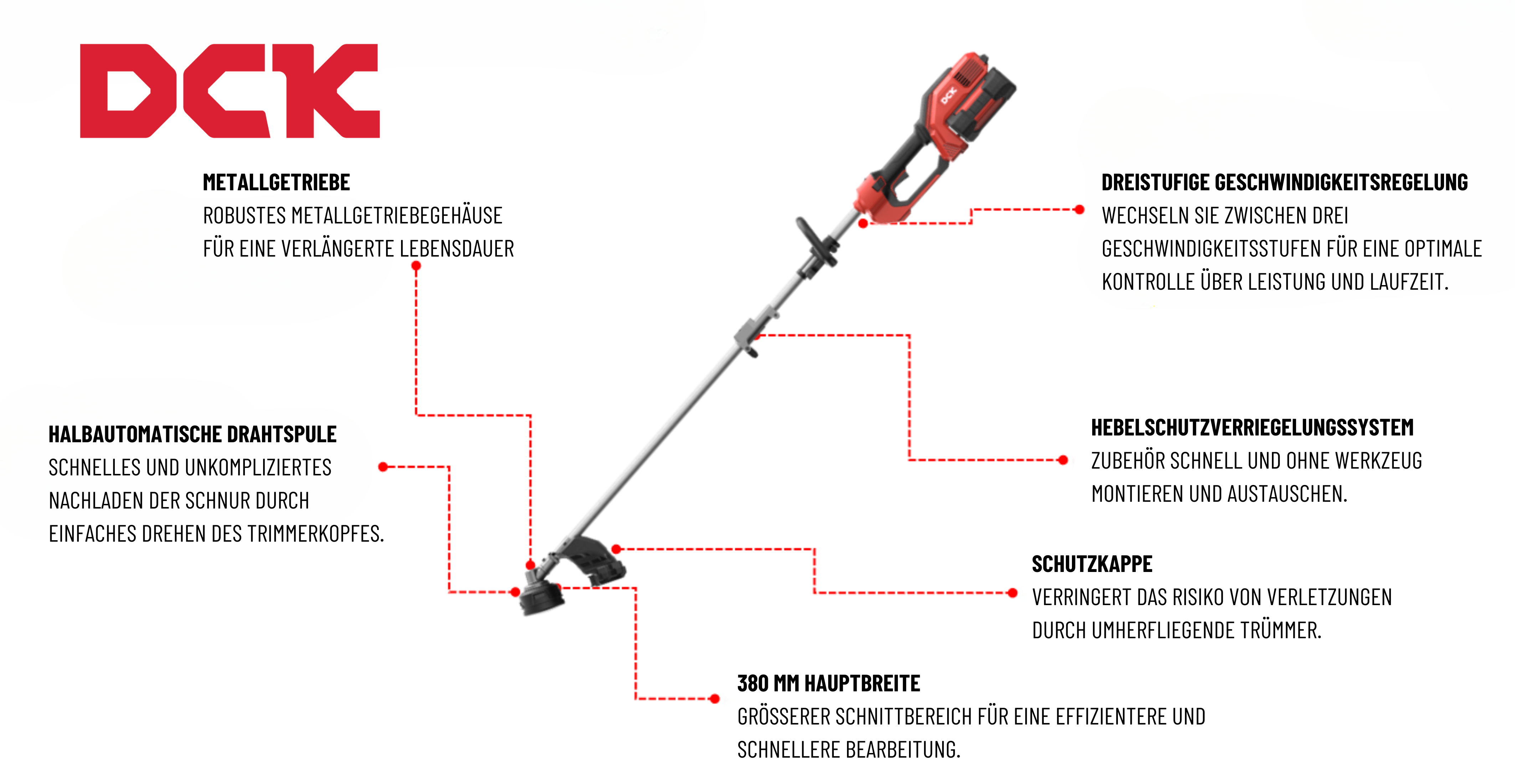 Mit diesen Eigenschaften ist der DCK 58V Akku-Freischneider eine smarte Wahl für alle, die Kraft und Bedienkomfort in einem Gerät suchen. 💪