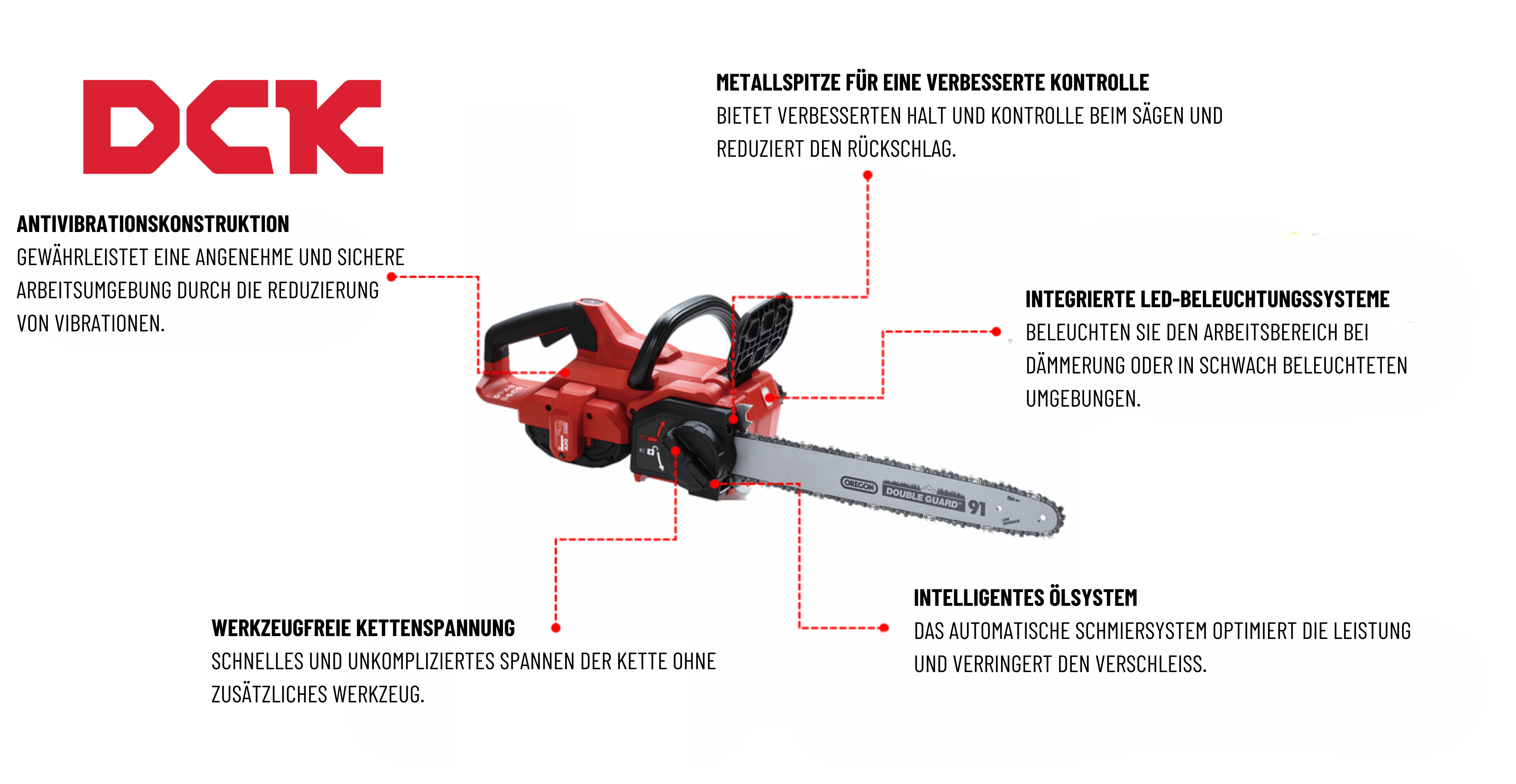 - DCK 58V Kettensäge im Überblick