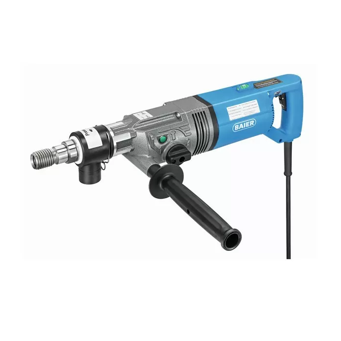 Die Baier BDB 825 ist eine Diamantbohrmaschine, mit der sowohl trocken als auch nass gebohrt werden kann. Ihre besondere Stärke liegt im Trockenbohren in armiertem Beton bis zu einem Durchmesser von 200 mm. In Kombination mit einem Baier-Stativ erreichen Sie höchste Genauigkeit. Diese Maschine ist ideal für Installateure, Bauunternehmer und Fachleute, die Flexibilität und Präzision verlangen. Bitte beachten Sie, dass die Maschine hauptsächlich handgeführt genutzt wird. Vermeiden Sie ausschließlich vertikale Bohrpositionen, um unnötigen Verschleiß zu verhindern.