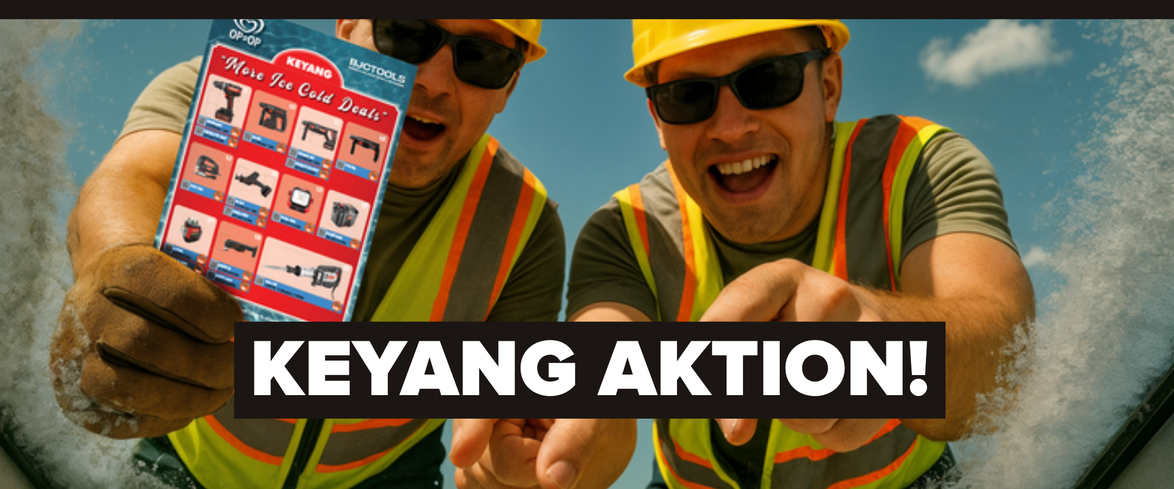 Lust auf ein wirklich eiskaltes Schnäppchen? Während des Keyang Summer Sale – „Ice Cold Deals“ – profitieren Sie bei BJC Tools von spektakulär reduzierten Keyang-Maschinen. Denken Sie an Schlagschrauber, Kombisets und SDS-Bohrhämmer, die mehr als halb so teuer sind – wie z. B. der SD20BL-BASE von 449 € für nur 199 €, oder das KD-12S + CKD12S-Set von 269 € für nur 129 €. Bei einigen Sets – wie dem COMBOKEY 108V1 – erhalten Sie sogar einen zusätzlichen Akku gratis dazu!