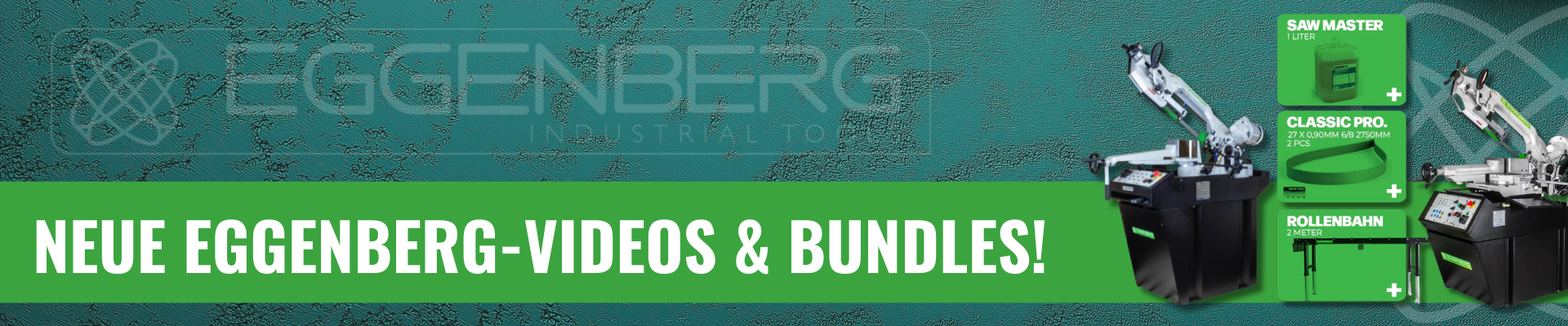 Möchten Sie direkt alles zur Hand haben, um optimal sägen zu können? Beide Maschinen sind jetzt als Komplett-Bundles erhältlich! Das bedeutet, dass Sie nicht nur eine leistungsstarke Eggenberg Bandsäge erhalten, sondern auch zusätzliche Sägebänder, Kühlflüssigkeit und Rollenbahnen für eine komplette Sägeeinrichtung. So können Sie sofort loslegen und das Beste aus Ihrer Investition herausholen.