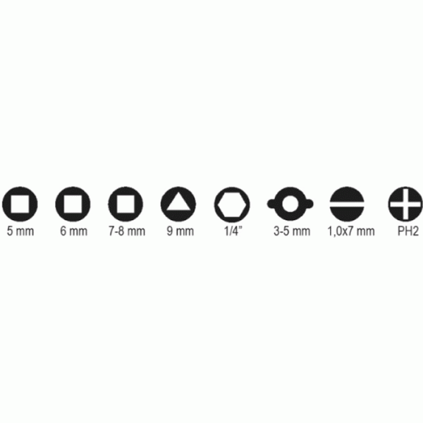 - Ausgestattet mit Doppeleinsatz mit Kerbe 1,0×7 mm und Kreuzschlitz PH2.