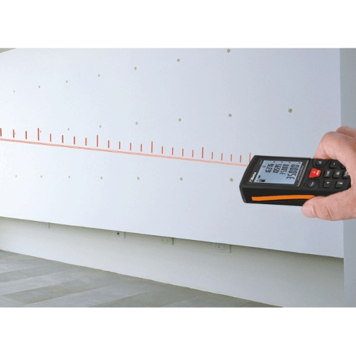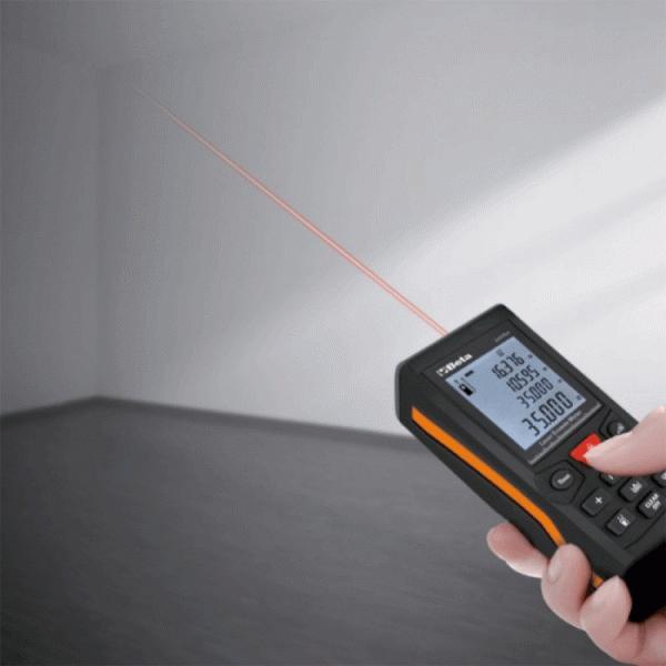 Beta 1693M Multifunktions-Laser-Entfernungsmesser 80 m ist ein nützliches Werkzeug zur Durchführung von Untersuchungen zur Optimierung des Betriebs. Dieser Entfernungsmesser ermöglicht Einzeldistanzmessung, Dauermessung oder Minimummessung und ist mit praktischen Funktionen wie Addition/Subtraktion, Flächenmessung, Volumenmessung, Neigungsmessung und variabler indirekter Messung (Pythagorasmessung) ausgestattet. Das 1693M 80 Meter ist mit der Fähigkeit ausgestattet, die Skala zwischen m, in und ft auszuwählen. Der Messbereich liegt zwischen 0,05 und 80 m bei einer Genauigkeit von ±1,5 mm (± 0,06 Zoll). Mit diesem Instrument können Sie bis zu 99 Messungen speichern.