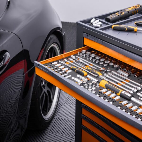 - BETA Werkzeugwagen 9 Schubladen gefüllt (Orange, Grau, Rot)