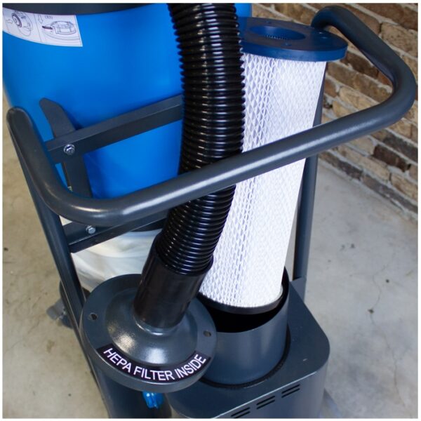Dieser Staubsauger wird für kleine Schleifmaschinen und elektrische Handwerkzeuge empfohlen. HEPA gilt für bestimmte Arten von Luftfiltern, die je nach Filtertyp zwischen mindestens 85 % und höchstens 99,999995 % aller 0,3 Mikrometer (µm) Staubpartikel zurückhalten. Der Staubsauger ist mit einem durchgehenden Faltbeutelsystem zur effektiven Staubspeicherung ausgestattet.