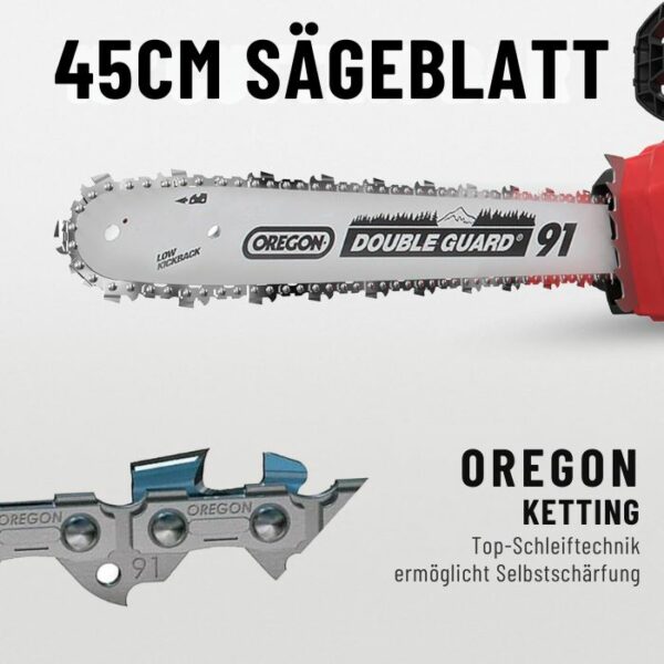 • 18-Zoll Oregon® Schwert: Hochwertige Kette und Schwert sorgen für präzise Schnitte und zuverlässige Leistung.
