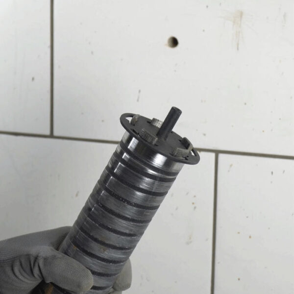 - Bohren Sie stoßfrei bis zu einer Tiefe von 4-8 mm. Dann mit dem üblichen Bohren fortfahren. Der Rand des Lochs bleibt flach, glatt und sauber, auch beim Bohren in Keramikfliesen. Ausgezeichnetes Ergebnis!