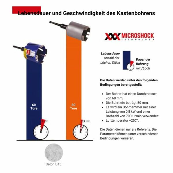 ✅ Starke Leistung – Für optimale Ergebnisse wird die Verwendung auf handgeführten Maschinen mit mindestens 650 W empfohlen. Kastenbohrer mit Mikroschlagfunktion.