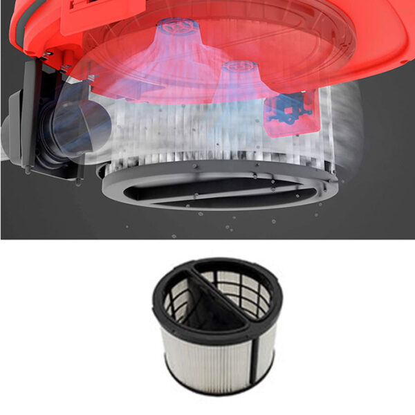 - Filtertyp – HEPA 13 Patronenfilter