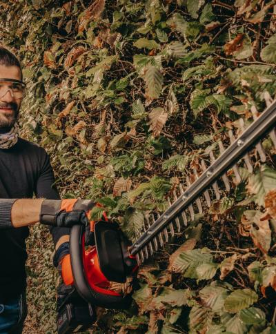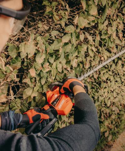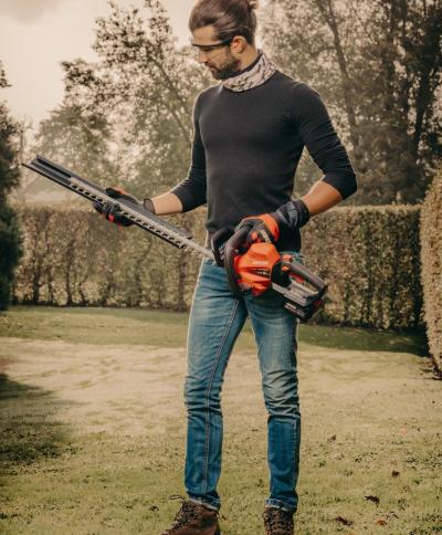 - Dank des abgasfreien Betriebs können Sie bequem an der Pflege von Hecken und Ziergehölzen arbeiten