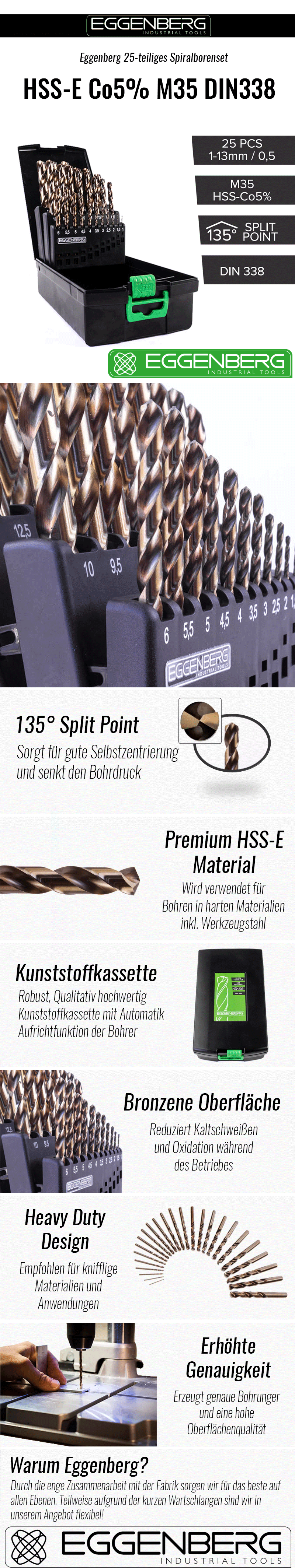 Funktionen Eggenberg 25 dlg Spiralborer Set HSS Co5% M35 DIN338 – 1-13 mm