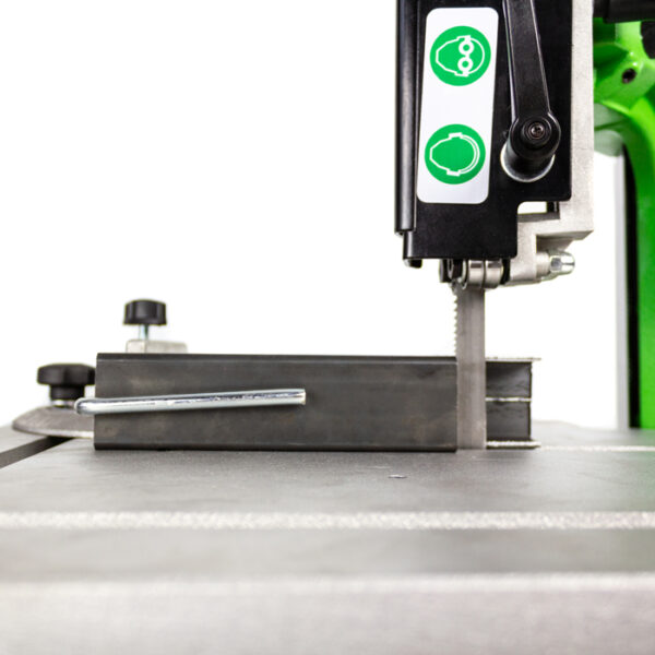 Stellen Sie die Sägeführungen so ein, dass zwischen ihnen und Ihrem Material so wenig Platz wie möglich ist. Auf diese Weise erhöhen Sie die Genauigkeit Ihres Schnitts.