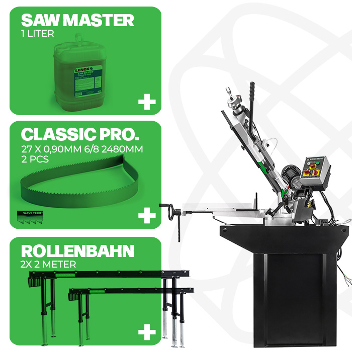 Ausgestattet mit einer 2x 2 Meter langen Rollenbahn für einfachen Materialtransport und einem Liter LENOX Sawmasters für optimale Wartung Ihrer Sägeblätter. Als zusätzliche Wertschätzung erhalten Sie auch zwei kostenlose LENOX Sägeblätter.