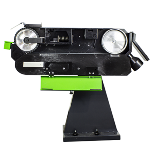 - Stufenlos einstellbarer/kippbarer Schleifbandmechanismus