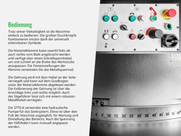 Funktionen Eggenberg Metallbandsäge Hydraulisch Halbautomatisch EBS3770-A – 355 mm 400V