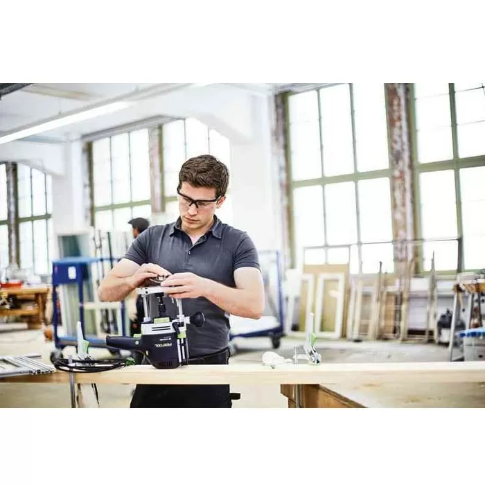 - Sauber und gesund arbeiten Für freie Sicht auf das Werkstück und gesunde Arbeitsumgebung hat die OF 1400 einen integrierten Absaugstutzen. Einfach ein Absaugmobil von Festool anschließen und sauber arbeiten.