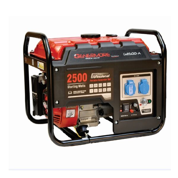 - Genermore Generator 2.5kVA Aggregat auf Benzin – G2500-A mit AVR – 1x230V