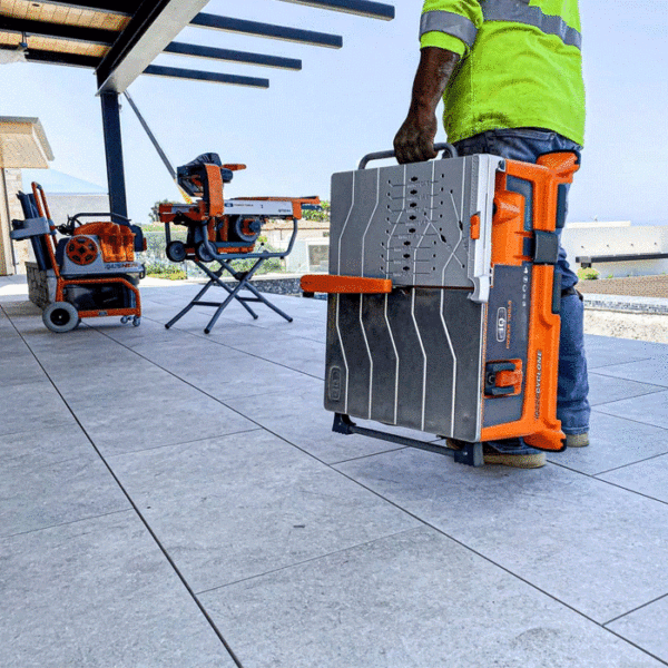 Das Trockensägen von Fliesen auf einem Sägetisch bietet viele Vorteile. Der Sägetisch muss nicht mehr mit Wasser gefüllt werden. Also kein Herumspielen mit Wasser oder Wassereimern, um den Tisch zu installieren. Der Tisch wird abgestellt und ist sofort einsatzbereit. Da kein Wasser verwendet wird, kann die Säge auch im Innenbereich verwendet werden, was keine Belästigung verursacht. Die gesägten Fliesen bleiben trocken und müssen daher vor der Verlegung nicht getrocknet werden.
