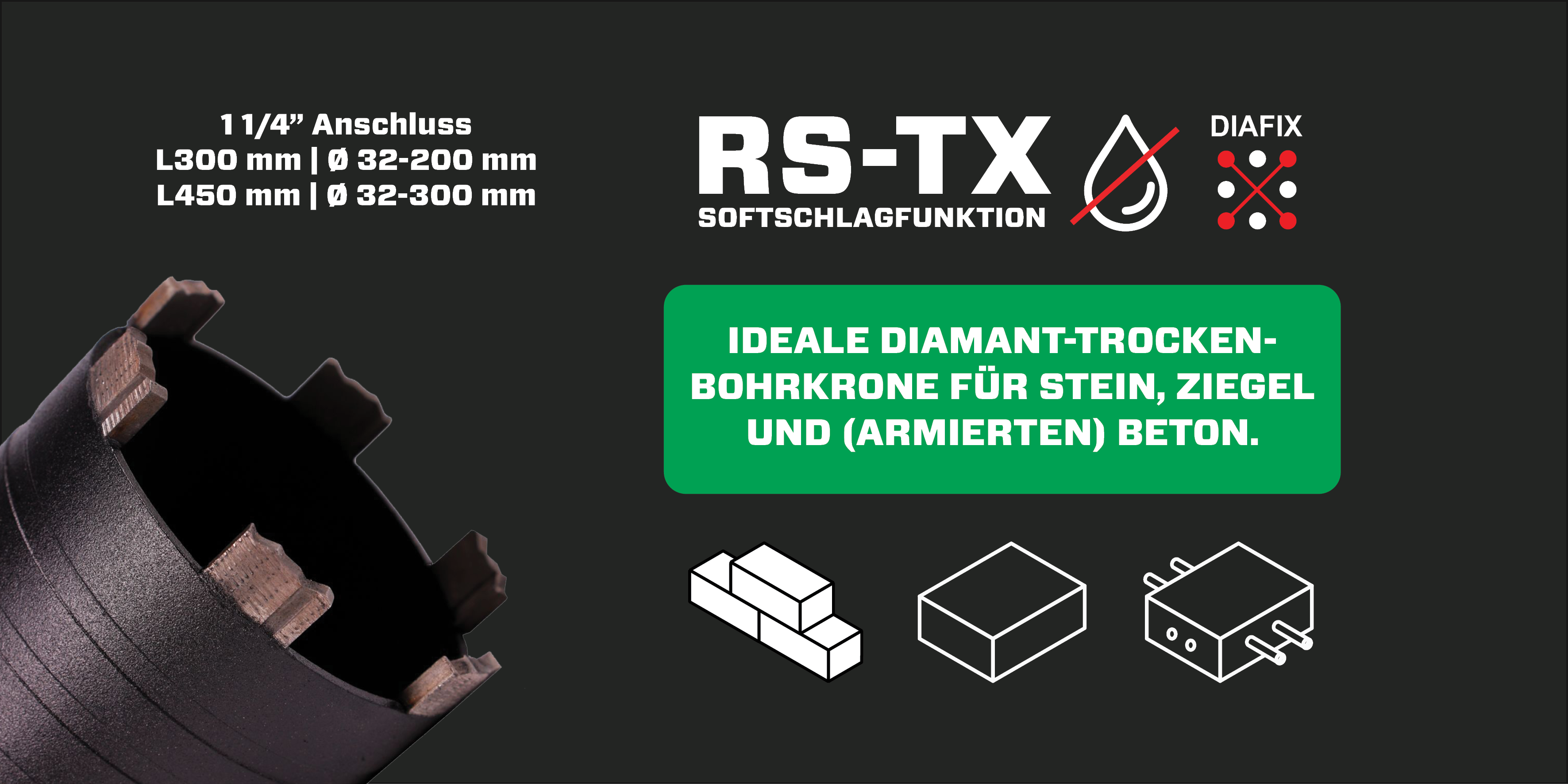 Funktionen KEM RS-TX Diamant-Trockenbohrkrone – 1 1/4” x 300 mm – Softschlagfunktion