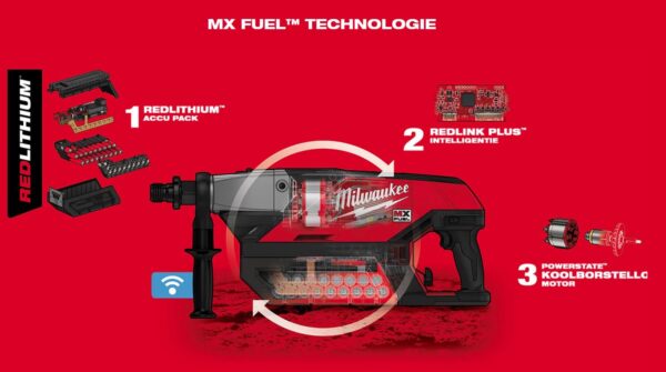 - Der bürstenlose POWERSTATE ™ -Motor der nächsten Generation von MX FUEL ™, die REDLINK PLUS ™ -Elektronik und der REDLITHIUM ™ -Batterie bieten überlegene Laufzeit, Leistung und Haltbarkeit auch bei härtesten Anwendungen