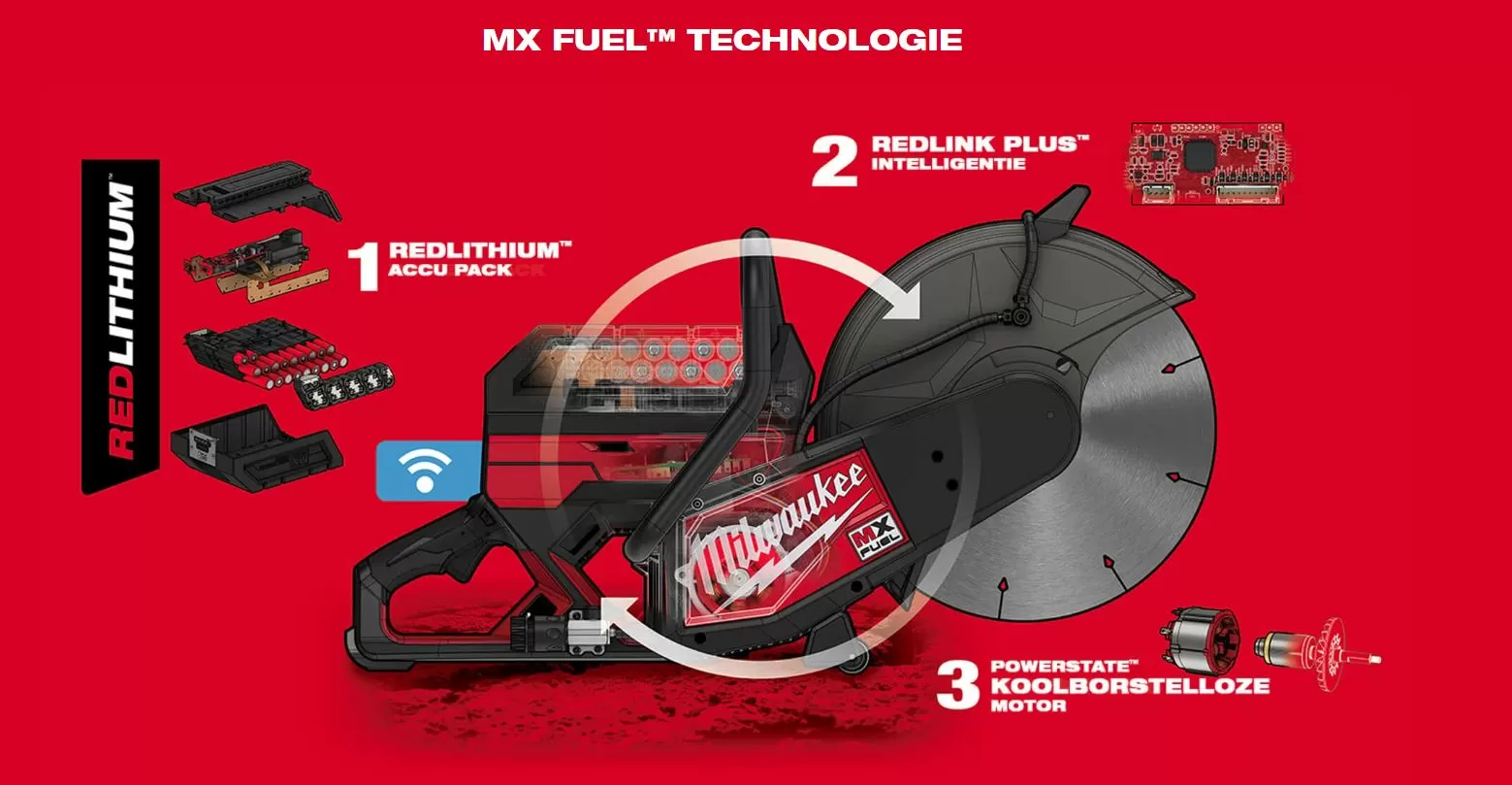 - Der bürstenlose POWERSTATE ™ -Motor der neuen Generation MX FUEL ™, die REDLINK PLUS ™ -Elektronik und der REDLITHIUM ™ -Batterie bieten überlegene Laufzeit, Leistung und Haltbarkeit auch bei härtesten Anwendungen