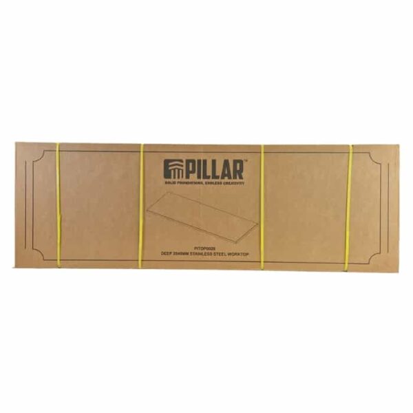 - Pillar Edelstahl-Arbeitsplatte 2040 mm – Tiefe Arbeitsplatte 38 mm