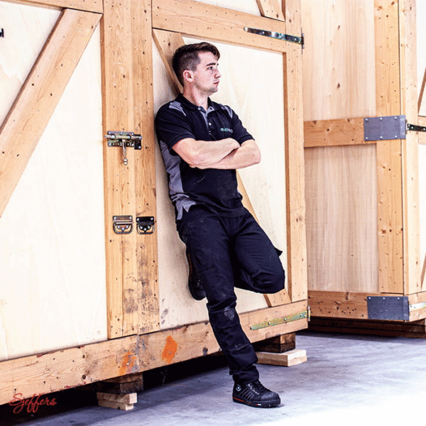 - Stabile Gürtelschlaufen, damit die Hose zum Beispiel um Nageltaschen erweitert werden kann