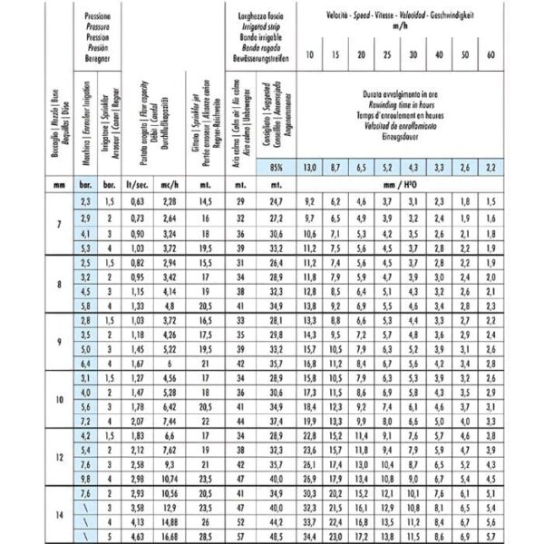 - Effektive Arbeitsbreite (85% Abdeckung): 25,8 bis 48,5 Meter