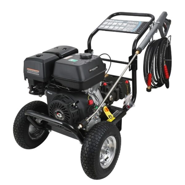 Der SprayMatix VM1300LS steht für maximale Leistung und Langlebigkeit innerhalb des Benzin-Sortiments. Dieser professionelle Hochdruckreiniger ist mit einem leistungsstarken 13,0-PS-4-Takt-OHV-Motor und einem Untersetzungsgetriebe ausgestattet, wodurch die Drehzahl auf 1500 rpm reduziert wird – für einen leiseren Betrieb und eine längere Lebensdauer. Mit einem maximalen Arbeitsdruck von 250 bar und einer Wasserleistung von 1020 Litern pro Stunde liefert diese Maschine außergewöhnliche Reinigungskraft für die schwersten Anwendungen. Dank des Benzinantriebs arbeitest du vollständig unabhängig von der Stromversorgung, ideal für den Einsatz vor Ort. Die robuste Konstruktion und hochwertigen Komponenten machen diese Maschine für den intensiven und langanhaltenden professionellen Einsatz geeignet. Komplett mit Zubehör geliefert, sodass du sofort loslegen kannst.