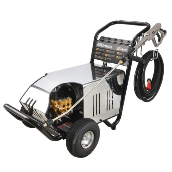Der SprayMatix VM240TLS Hochdruckreiniger liefert 250 bar und 930 L/h. Topmodell für schweren industriellen und kontinuierlichen professionellen Einsatz.