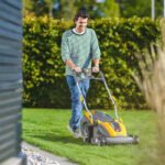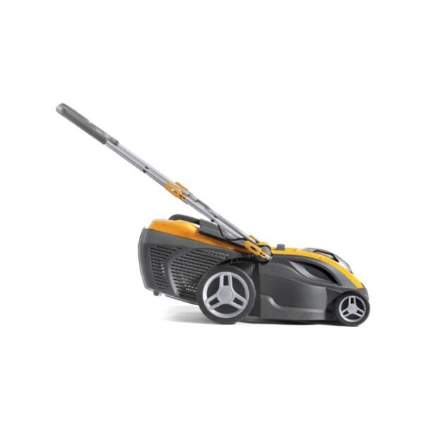 - Einfache Aufbewahrung – Dank des neuen Scharniersystems mit Schubgriff ist der Rasenmäher schnell und einfach zu verstauen.