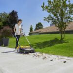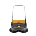 Kehrmaschine für den Außenbereich ohne Antrieb mit zwei 41 cm Rotationsbürsten und einem 50 Liter Schmutzbehälter.