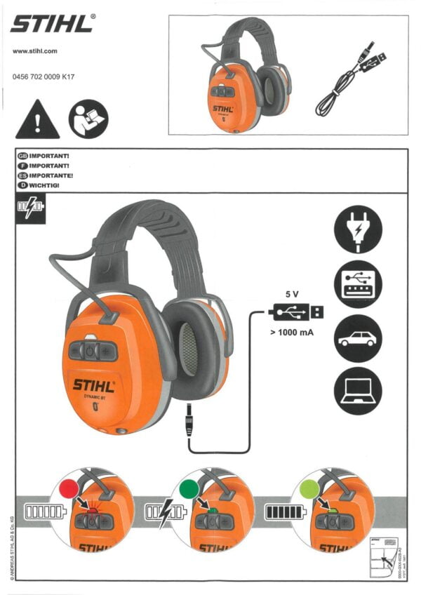 - Der Gehörschutz Stihl DYNAMIC BT ist separat oder in Kombination mit einem Nylongitter oder einer Kapuze erhältlich. Es funktioniert mit einem Lithium-Ionen-Akku mit einer extrem langen Betriebszeit