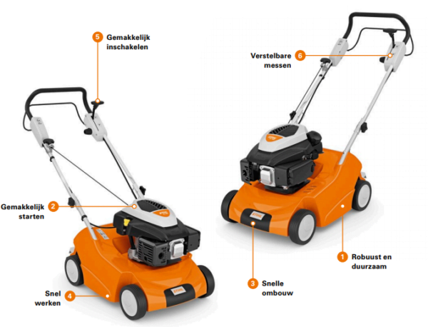 - Kunststoffgehäuse – Das Gehäuse der STIHL Vertikutierer ist aus hochwertigem, schlagfestem, hitze- und UV-beständigem Kunststoff gefertigt.